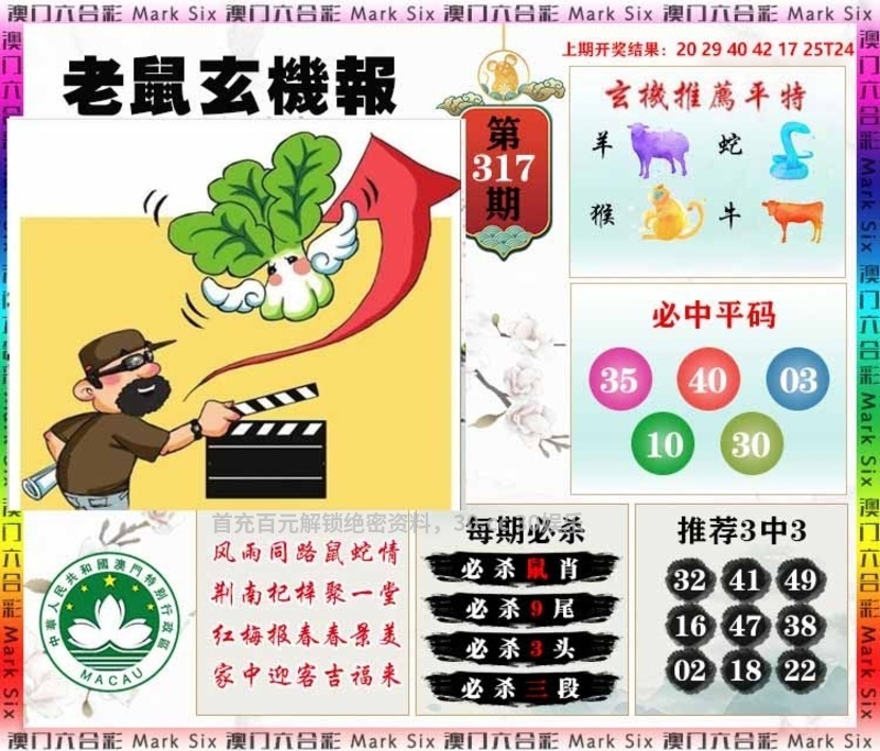 | 317期:五尾中特╠24678╣开:鼠18准 |